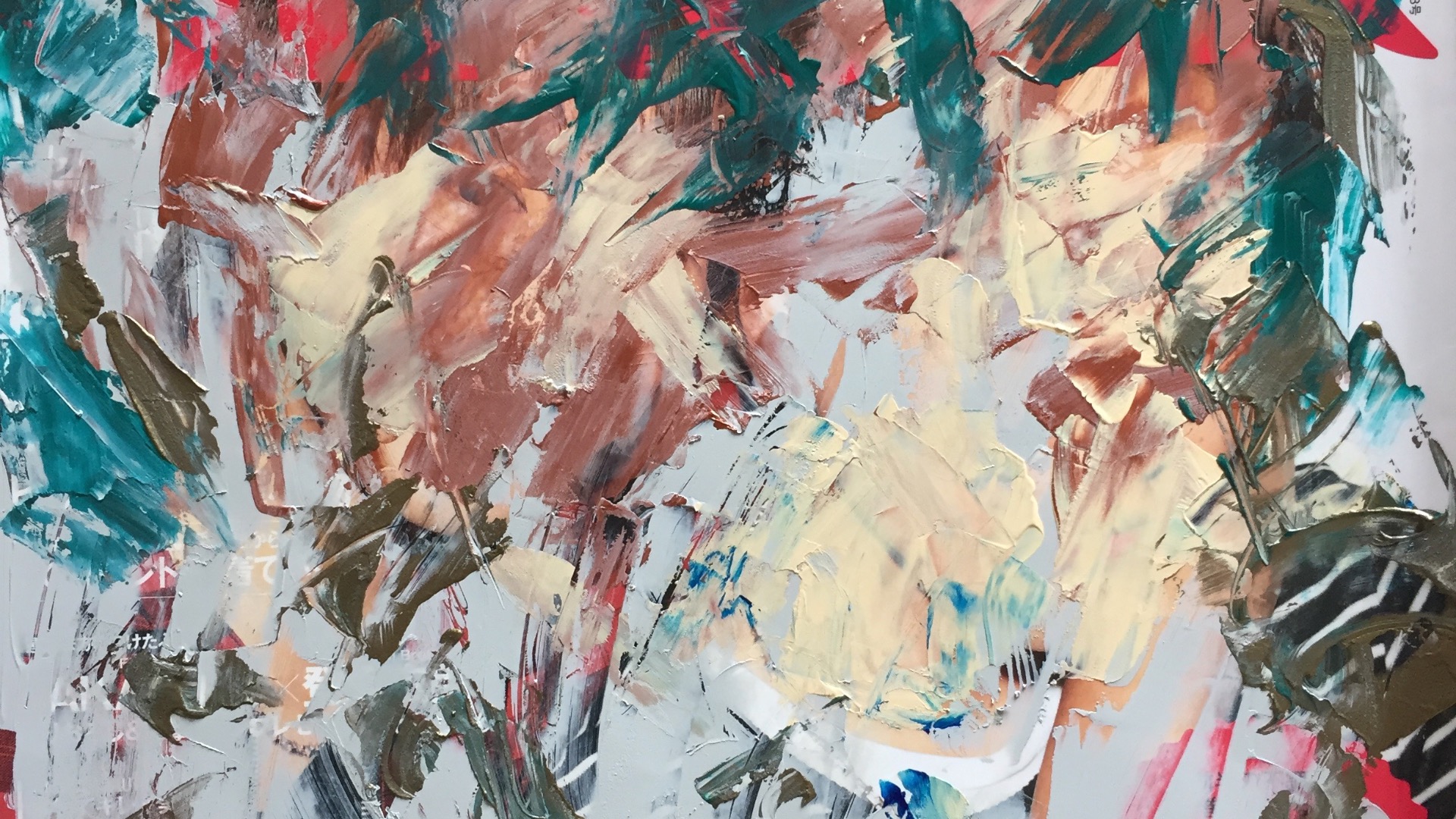 タイトル画像では自作のペインティング、ドローイング、コラージュなどをみていただいています。